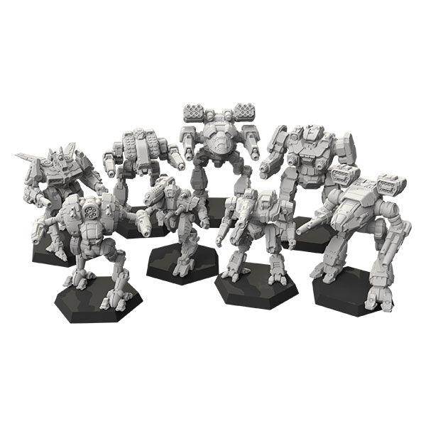 The new Core Box uses the bestselling A Game of Armored Combat boxed set as the foundation to construct an immersive, fun experience. A highlight of the new Core Box is the Sagas lore booklet. This brand-new primer opens the doors to the BattleTech universe with a series of gorgeous, all-new art pieces, but also guides players through choosing a faction, a style of play, and more. The eight high-quality, ready-to-play miniatures included in the box represent a cross-section of more than thirty years of beloved BattleTech lore. They include the Hollander and Rakshasa that first appeared in Technical Readout: 3055; the Solitaire from Technical Readout: 3067; the Uziel and Mad Cat Mk II that premiered in the MechWarrior 4: Vengeance computer game; the Vulture Mk IV Prime that first hit game tables as part of MechWarrior: Dark Age; and the Regent and Eris from the new ilClan Era Recognition Guides.
