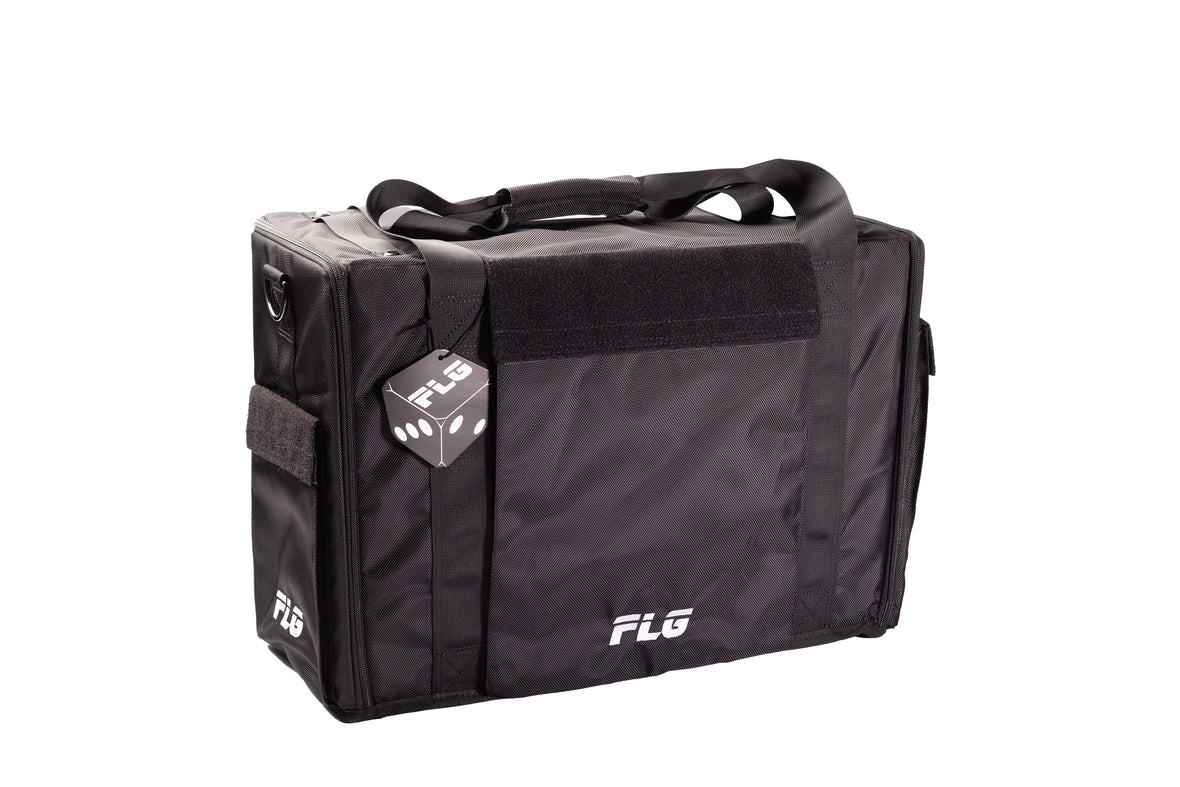 The FLG Airborne Bag can fit up to 8.5 inches of the FLG pluck foam trays (19.5 inch x 13 inch per tray). The bag was created with travel in mind and is designed to meet FAA regulations for carry on luggage. Easily fit and protect your entire army of miniatures into this high quality carrying case!