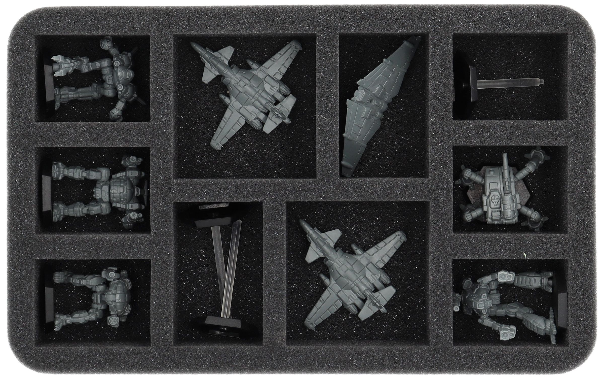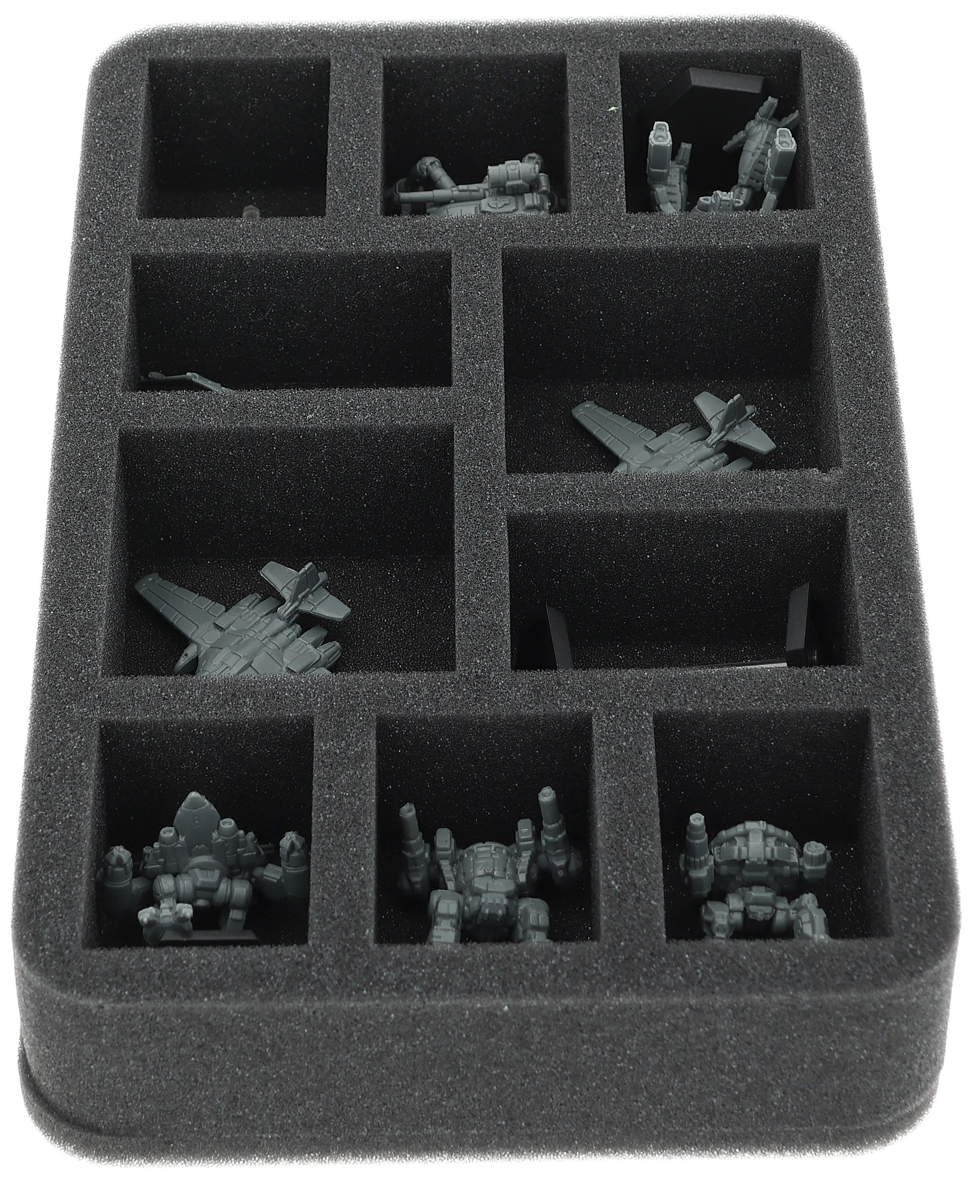 This foam tray with its 10 compartments is ideal for storing BattleTech miniatures clearly arranged and well protected.