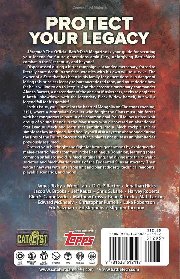 Shrapnel: The Official BattleTech Magazine is your guide for securing your legend for future generations amid fiery, unforgiving BattleMech combat in the 31st century and beyond!