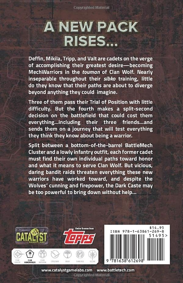 Deffin, Mikila, Tripp, and Valt are cadets on the verge of accomplishing their greatest desire—becoming MechWarriors in the touman of Clan Wolf. Nearly inseparable throughout their sibko training, little do they know that their paths are about to diverge beyond anything they could imagine.