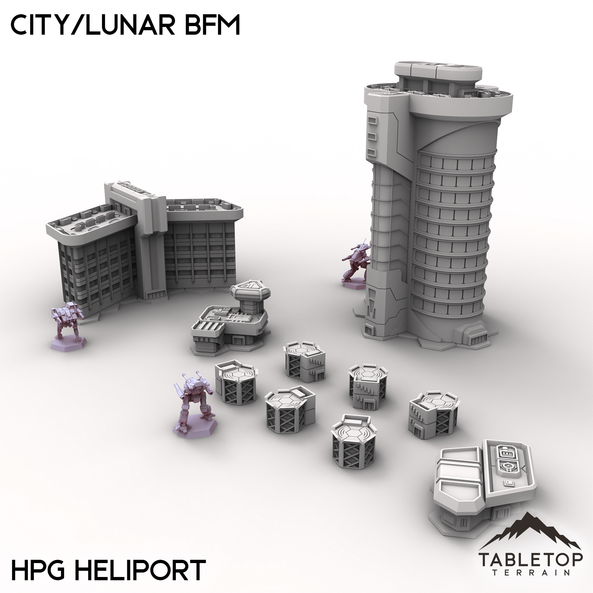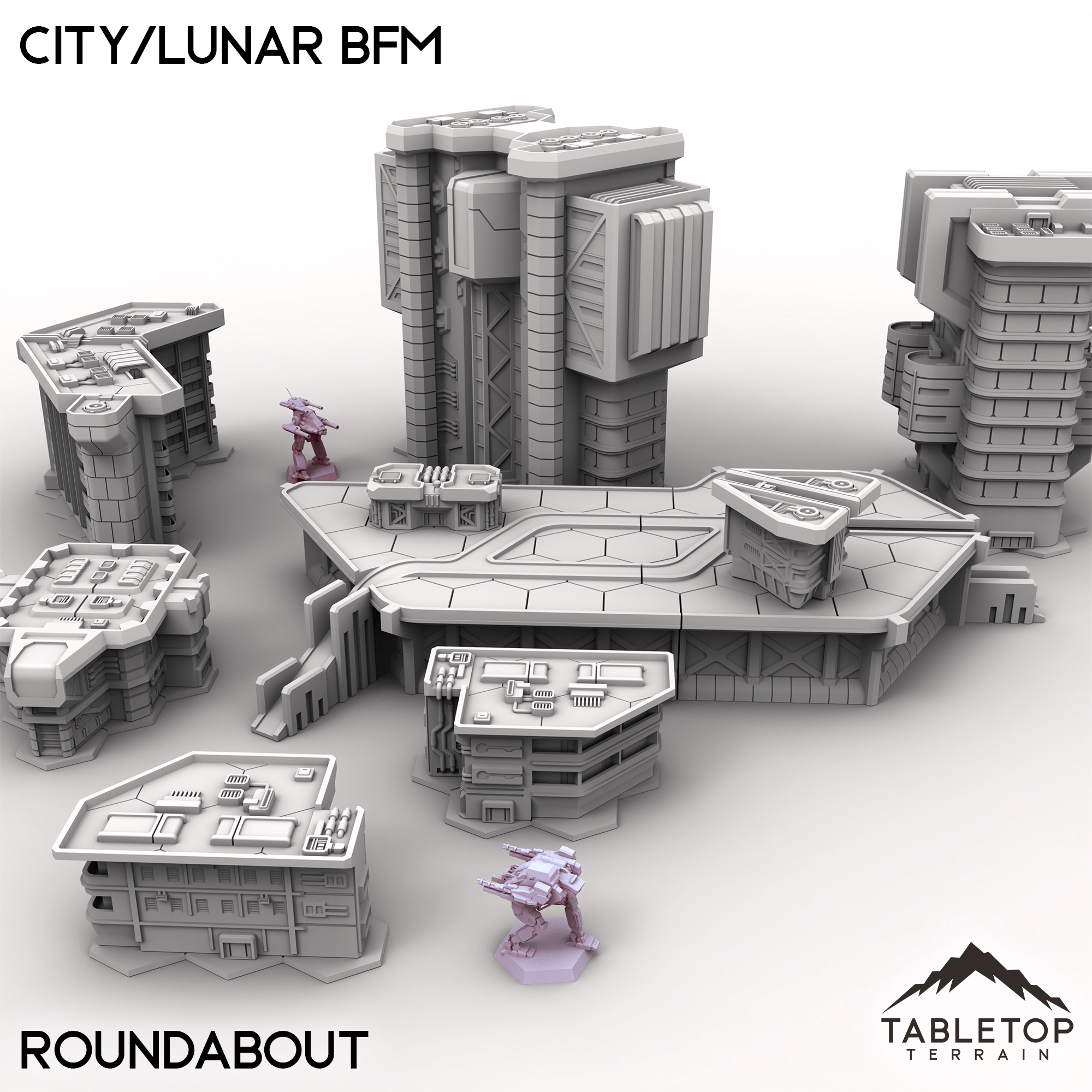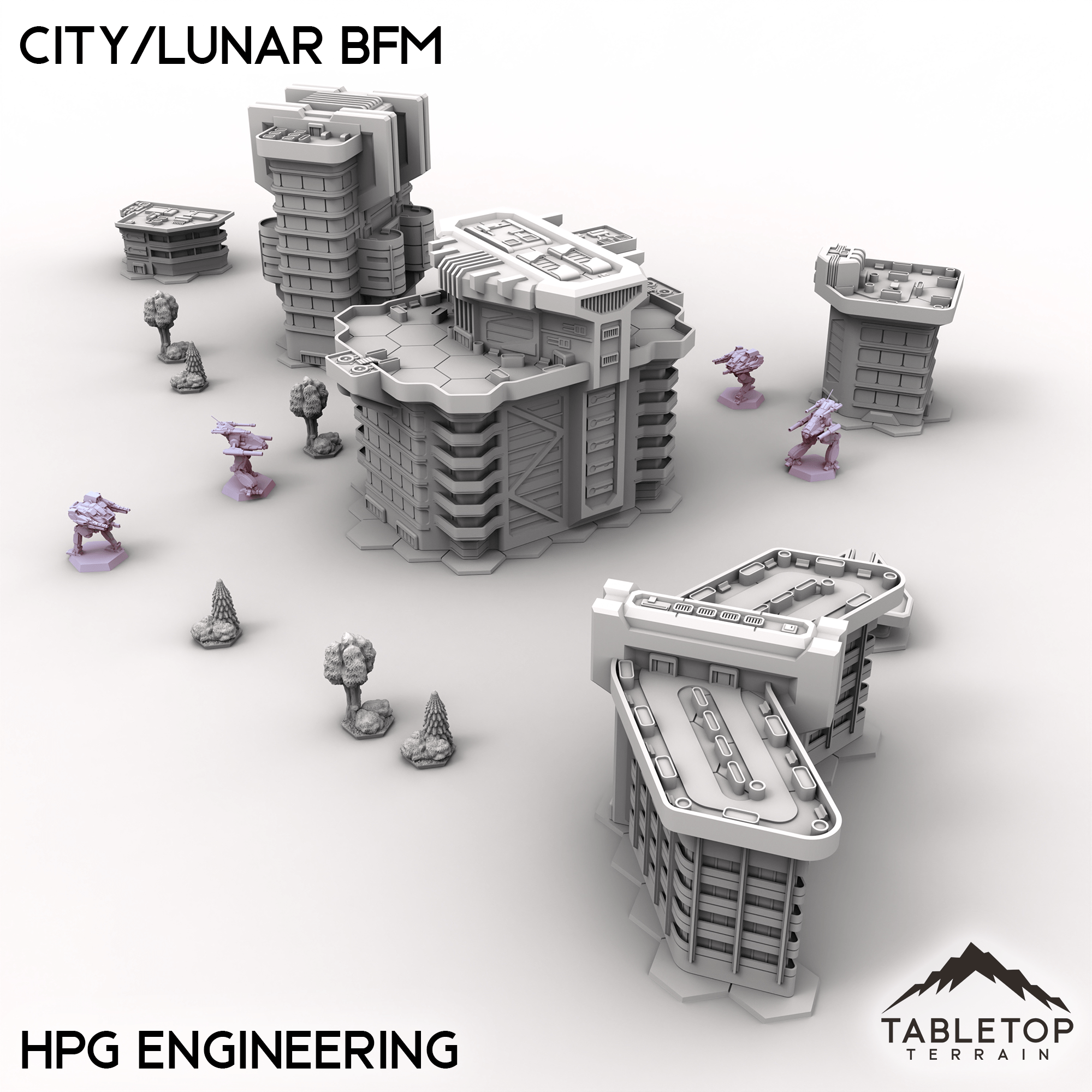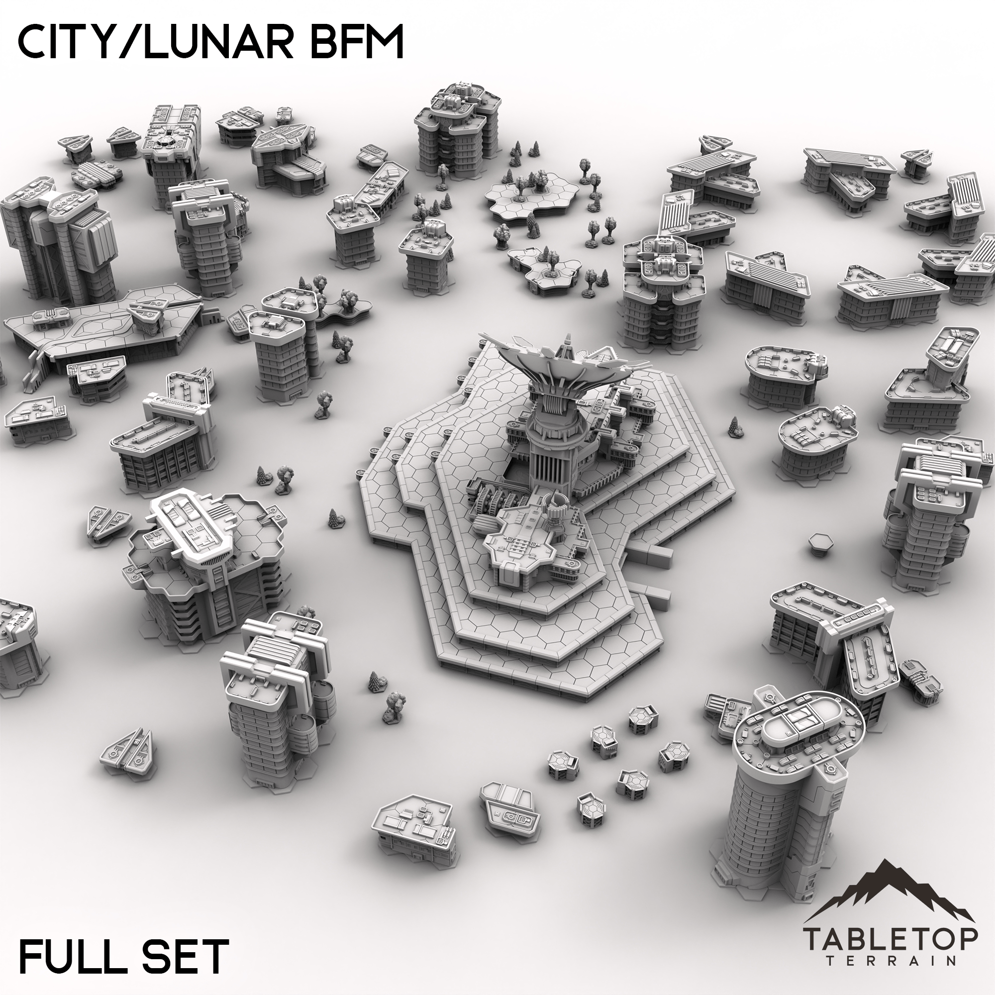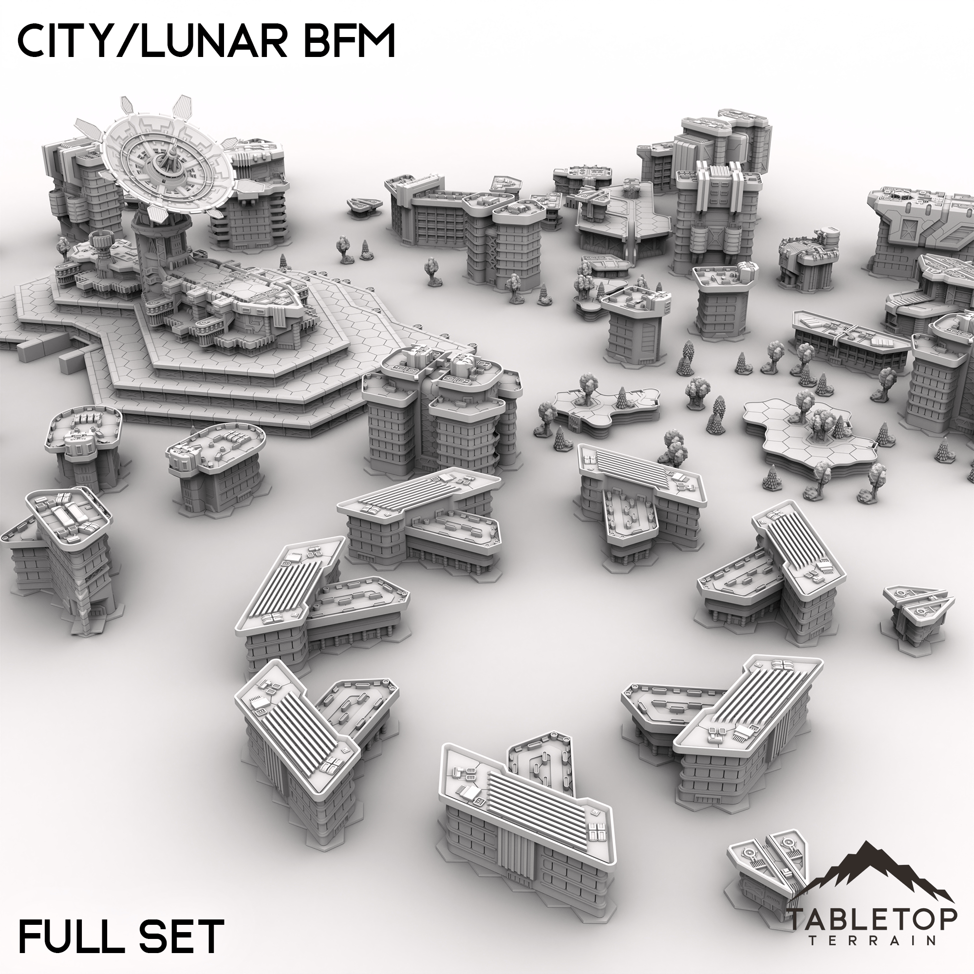 Wage battle across one of our largest table sets ever with the City/Lunar BFM collection! This massive set combines 9 different map packs into 1 set-piece. Ranging from corporate districts, to living quarters, and even parks and natural hills, this set is made to handle an entire city layout.