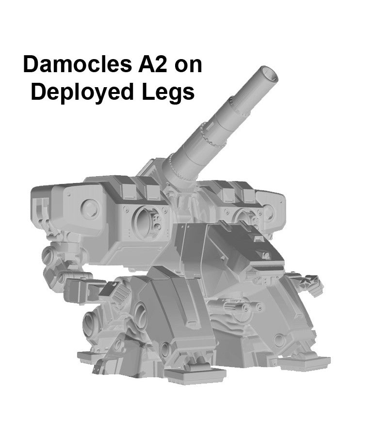 One set of Deployed Legs for use with either the Mammoth or Damocles 3D printed Strider miniatures (sold separately) and show how the legs fold down for a braced stationary firing pose.
