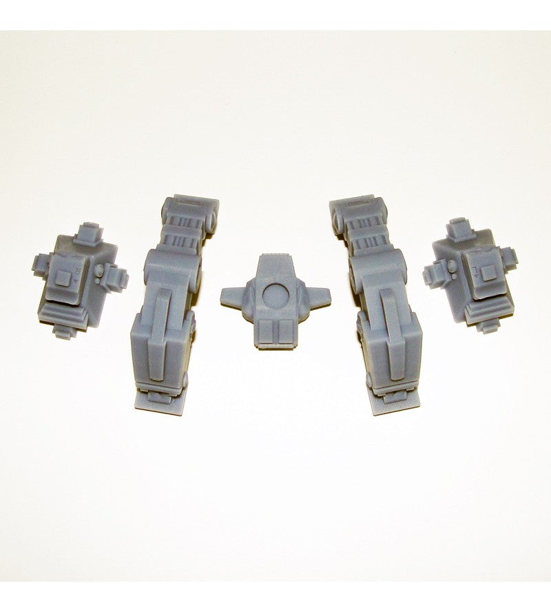 Includes 5 resin parts (left deployed leg, left foot, right deployed leg, right foot, and hips). Packaged in one of our small clamshell blisters.
