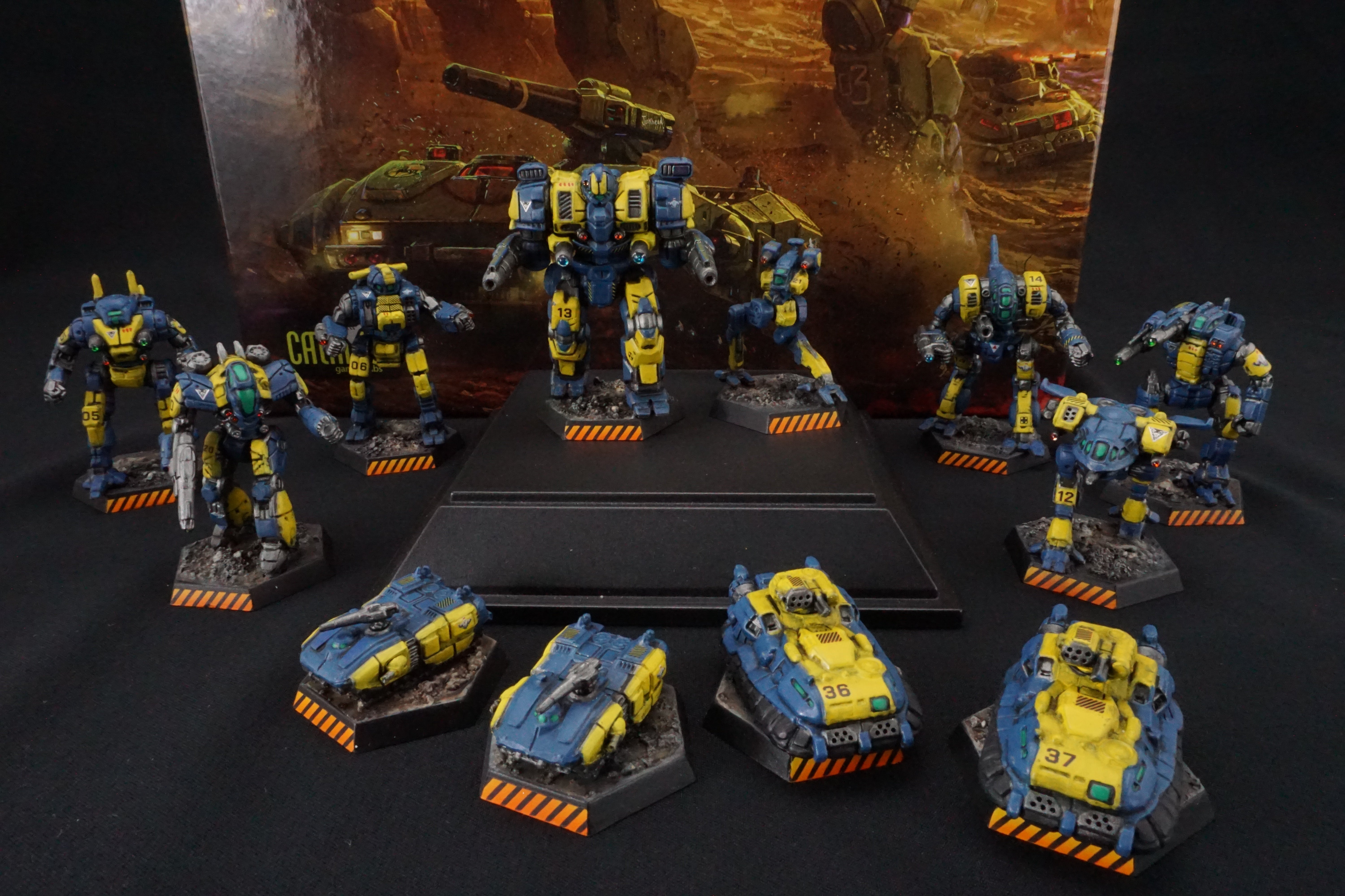 Up for sale is a brand new Battletech Mercenaries box set completely painted in the McCarron’s Armored Cavalry colors. Please see photographs.