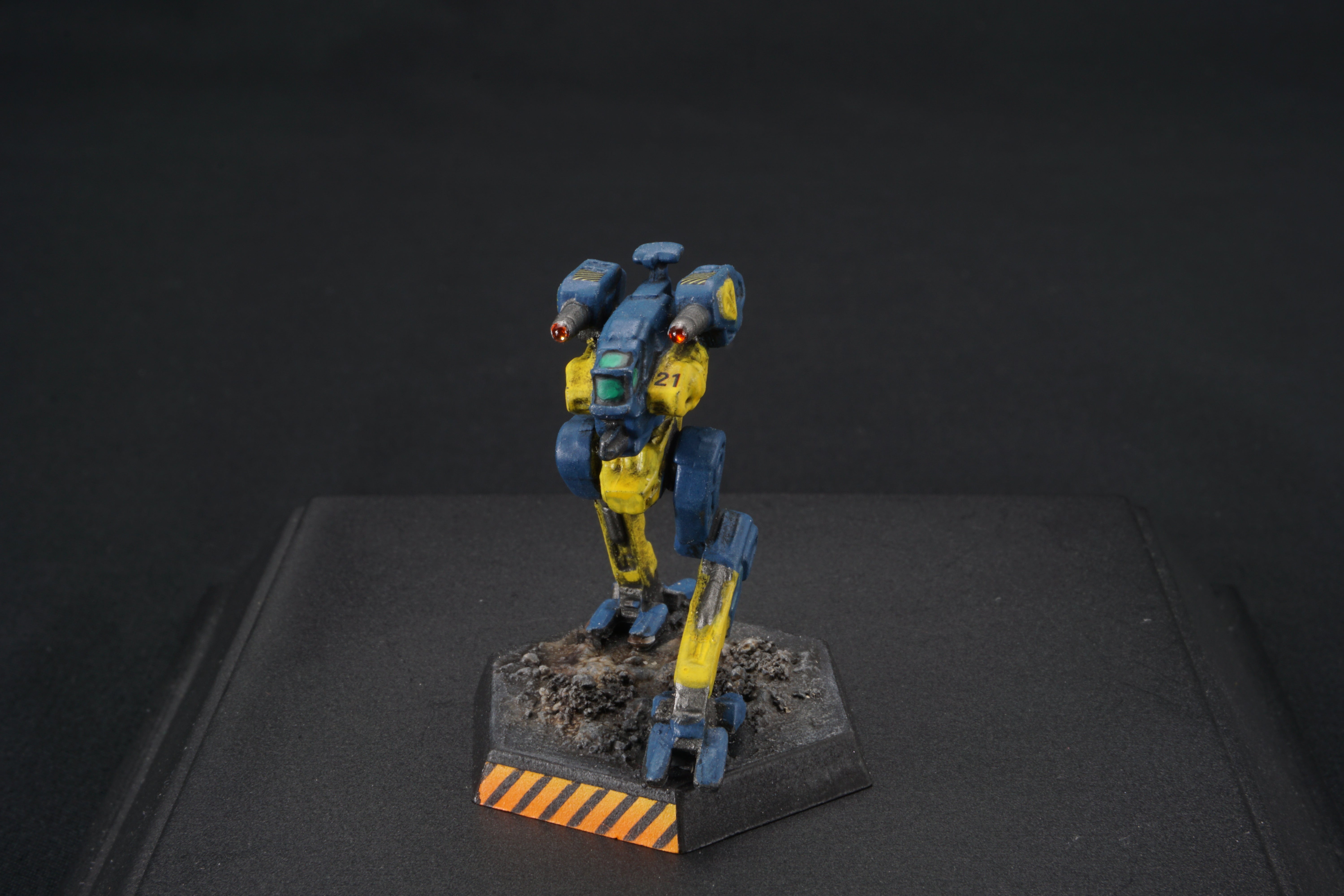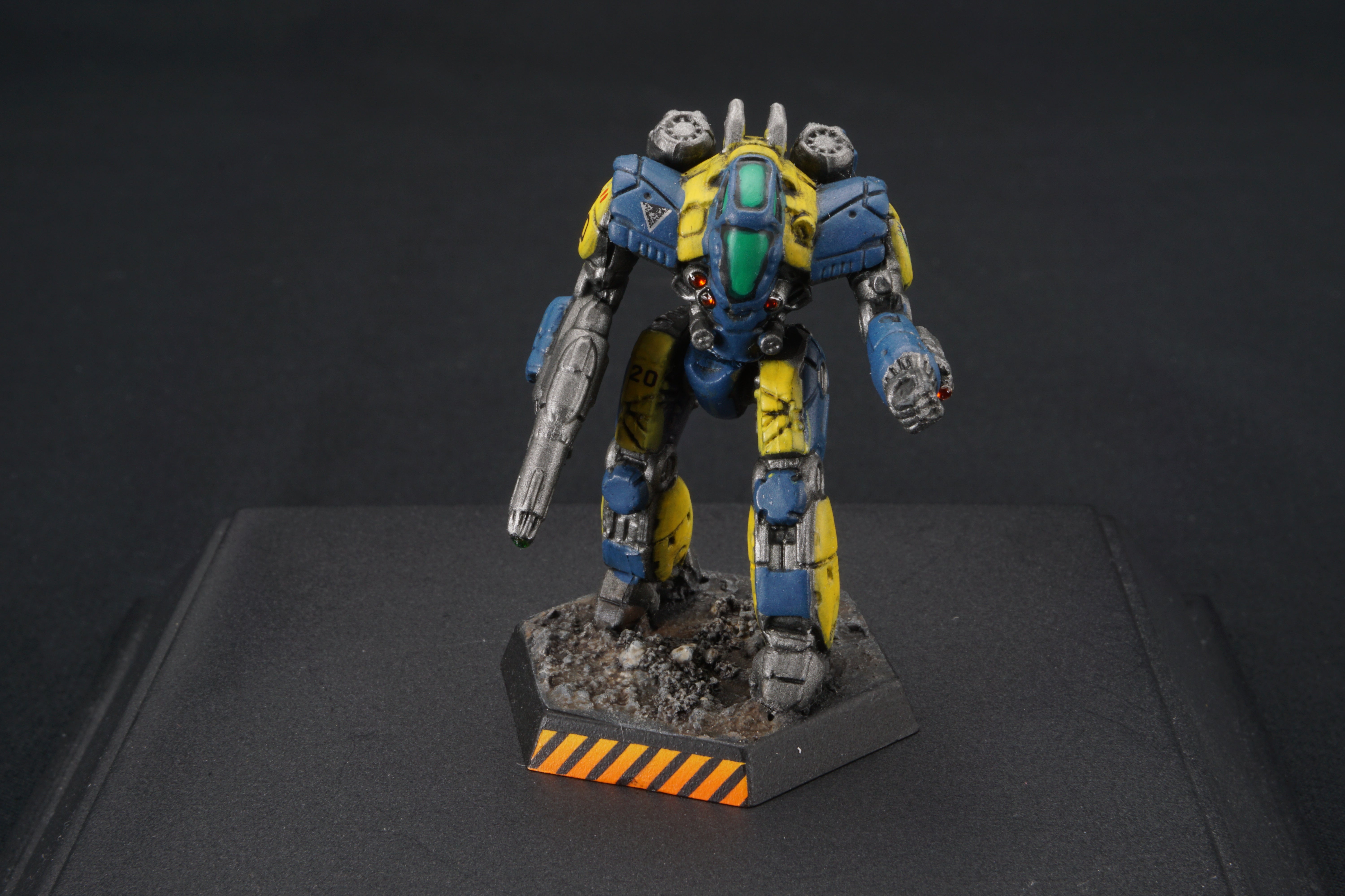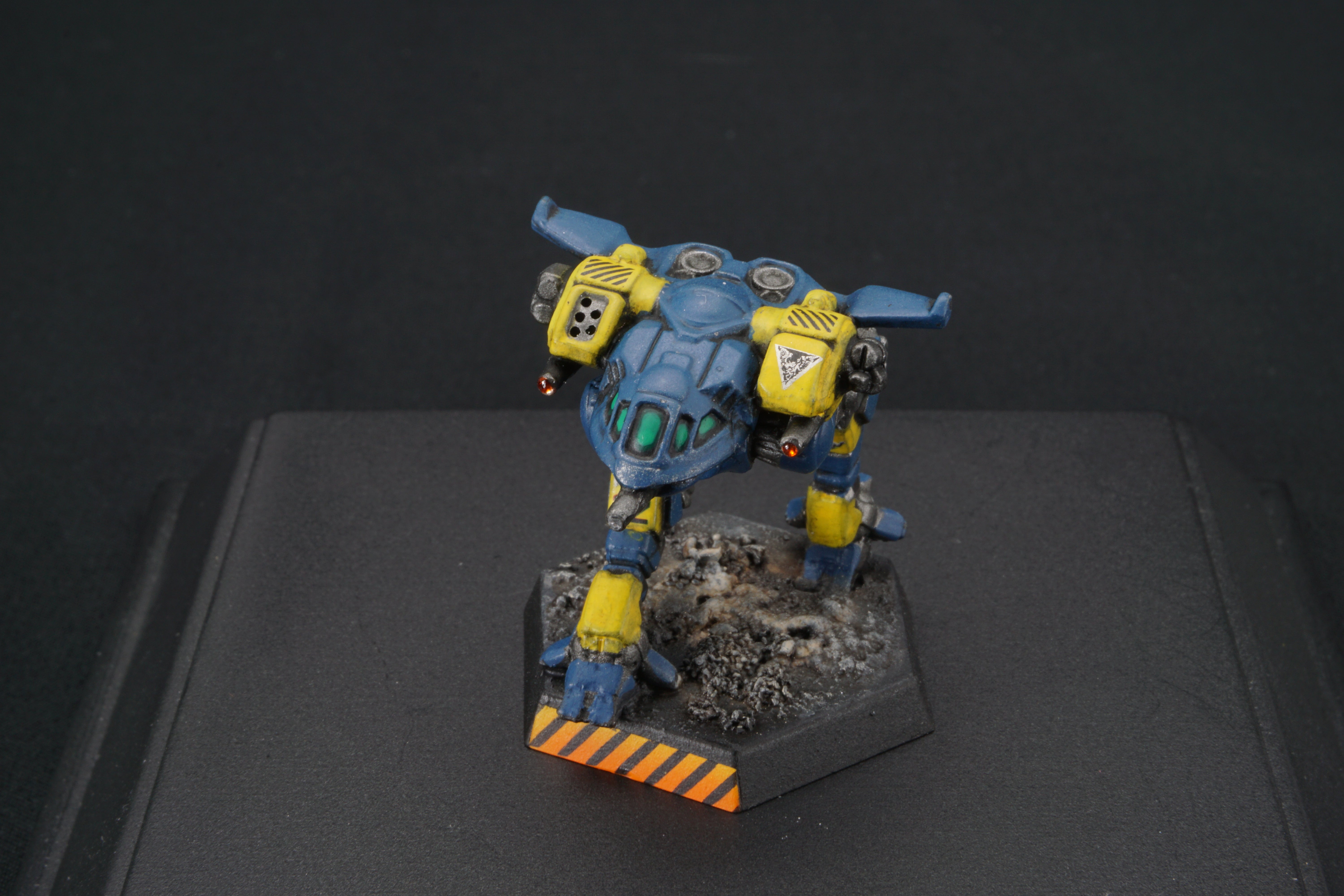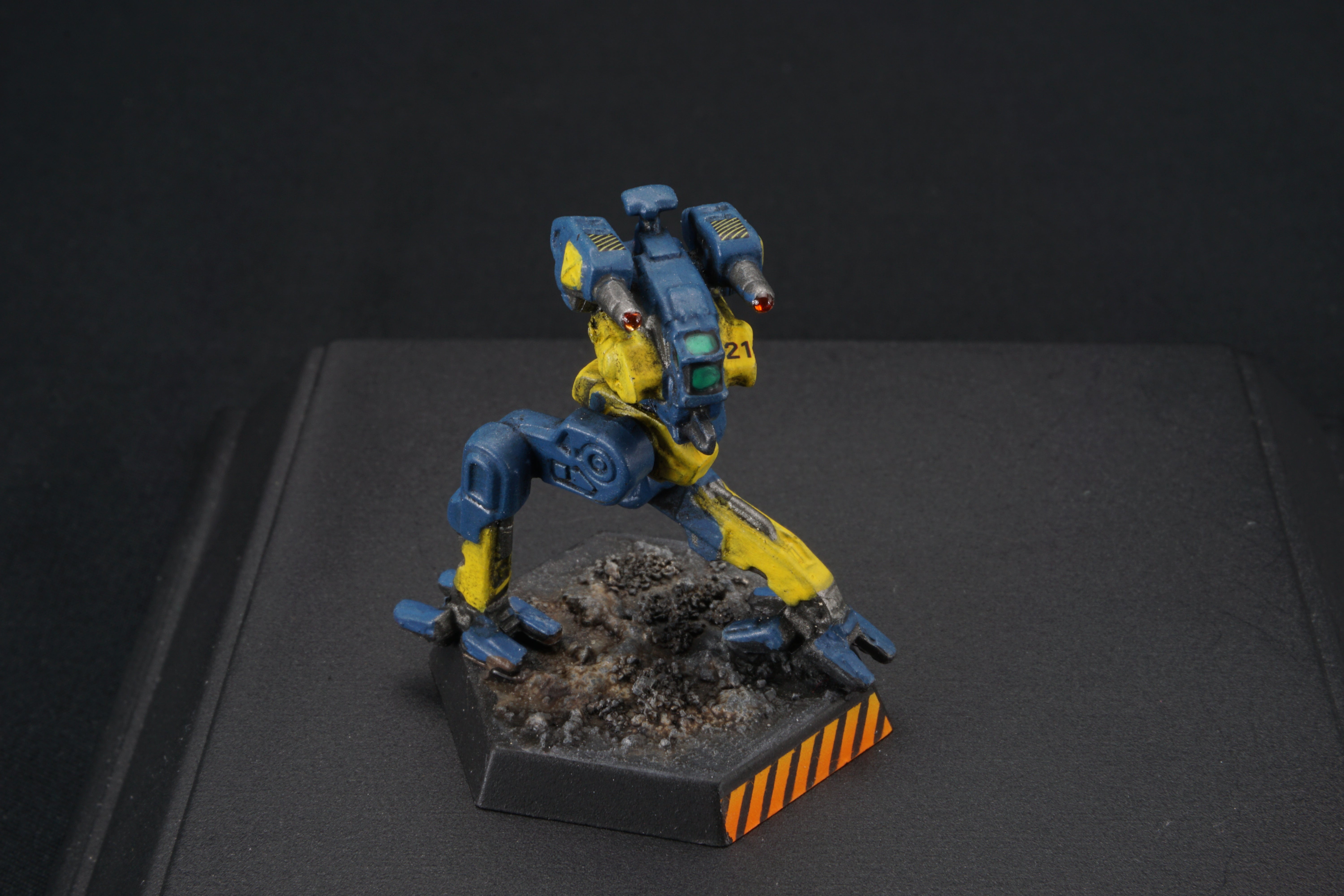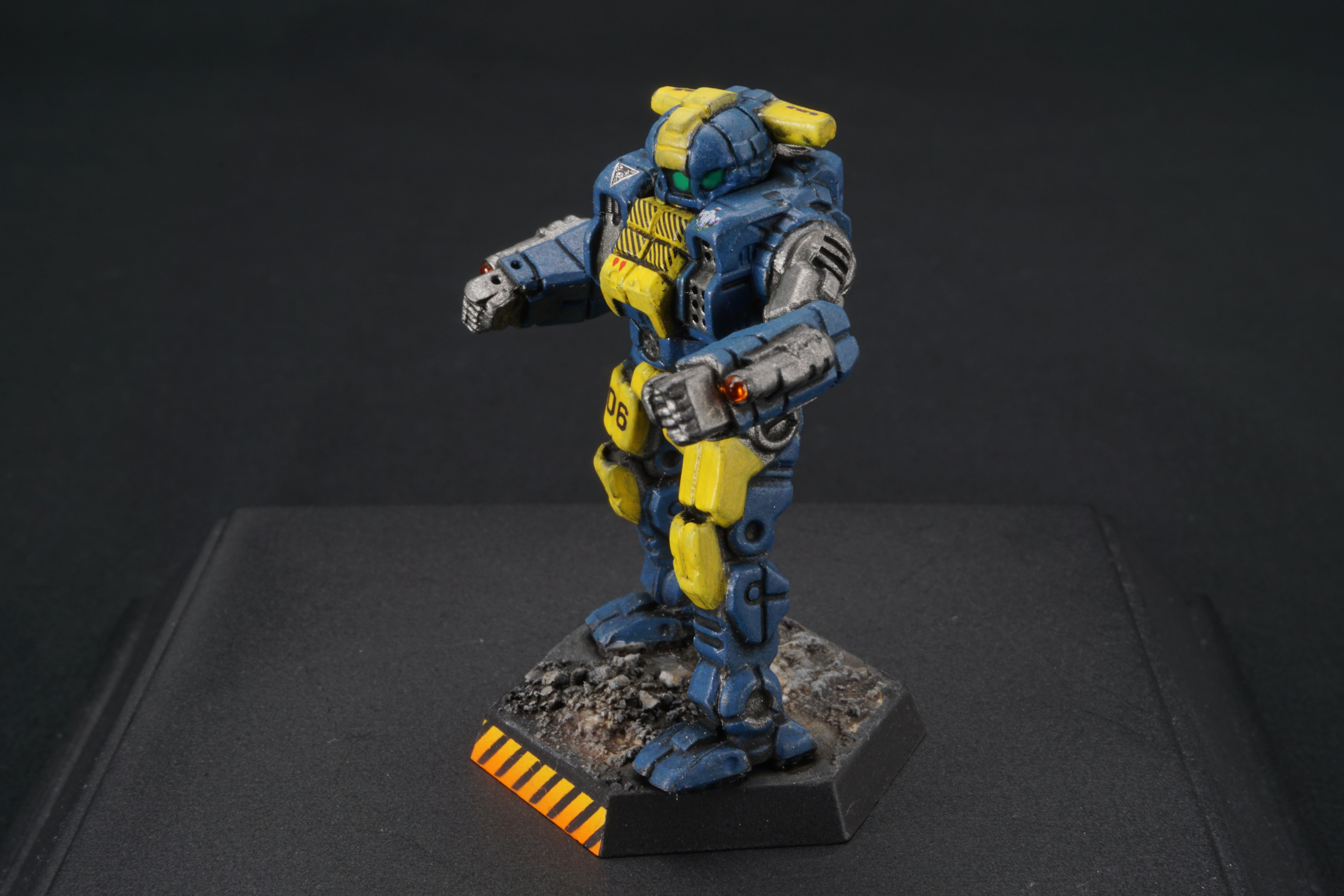 Each miniature base is painted to facilitate easy customization - so you can match your mechs to your terrain at home - add desert scrub and dust, or add snow, or green foliage.  I've provided a base that should work with anything from forests to urban environments.