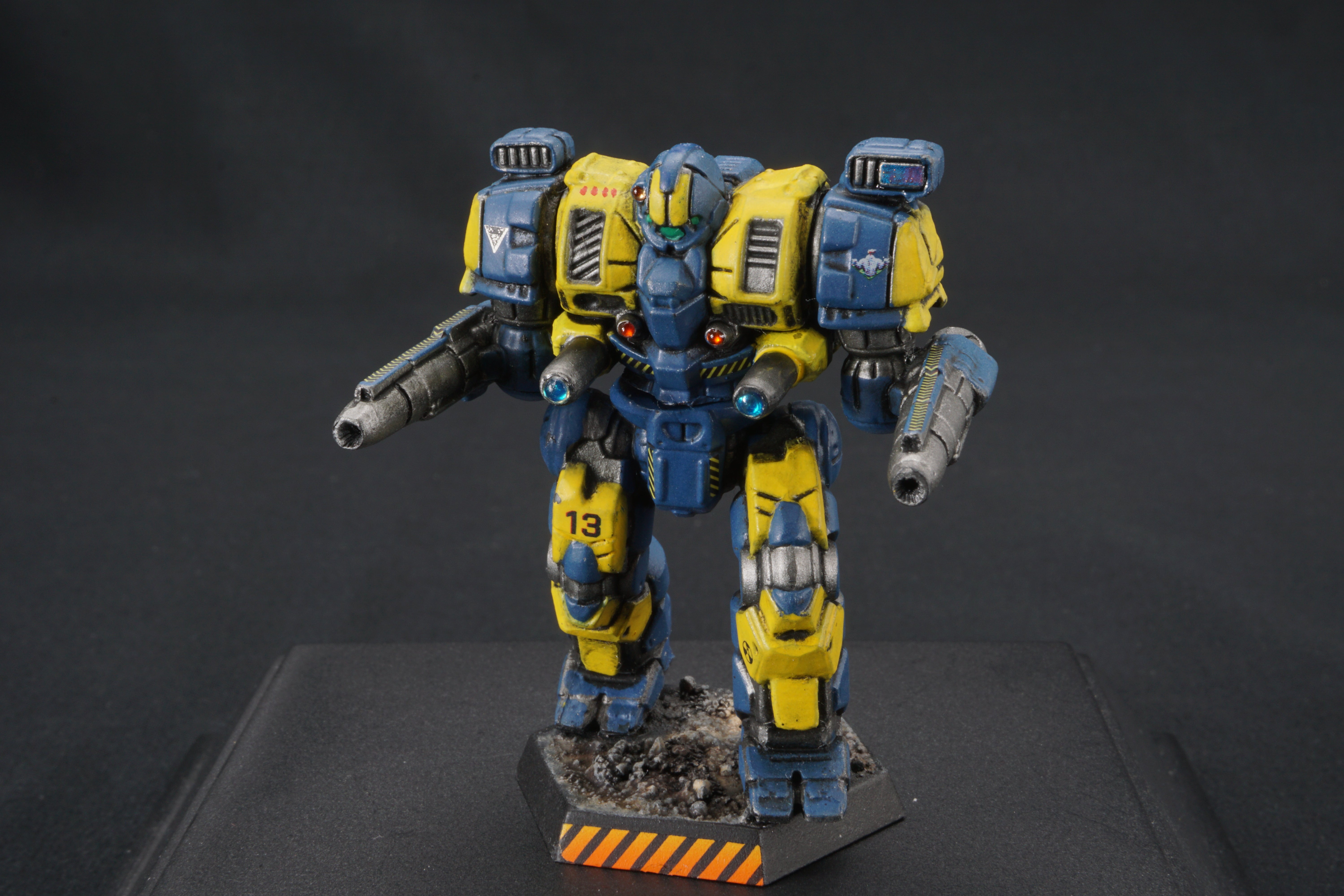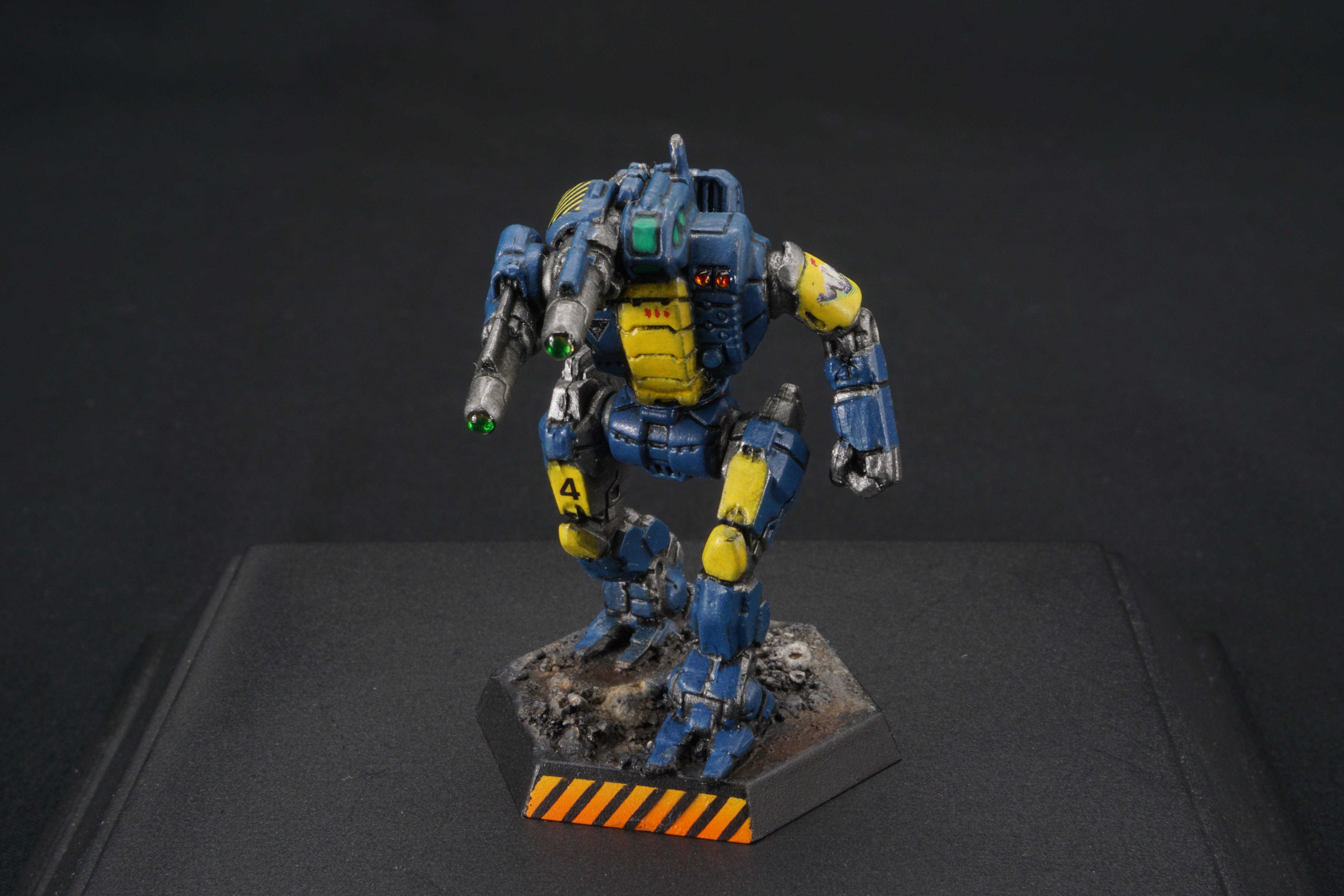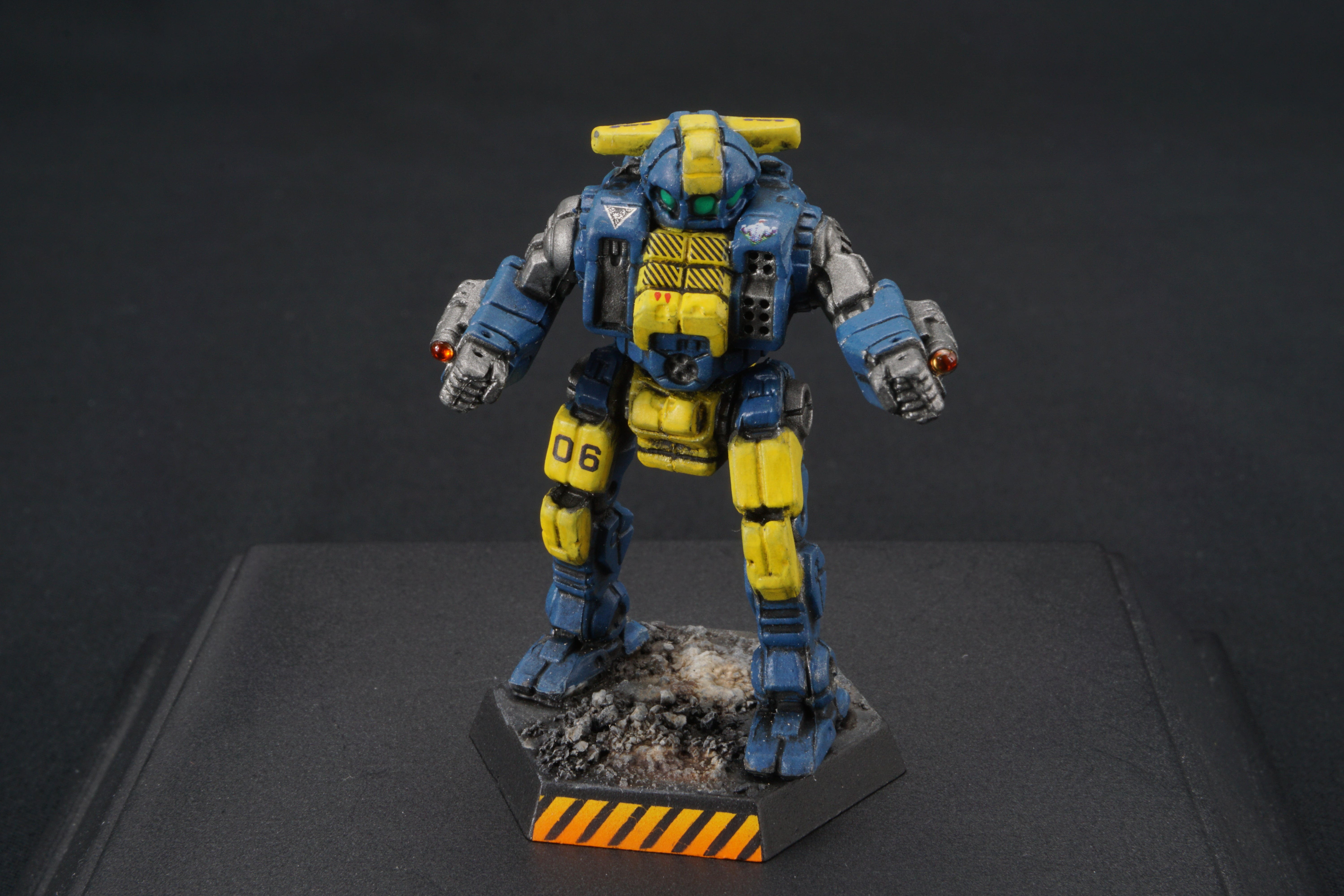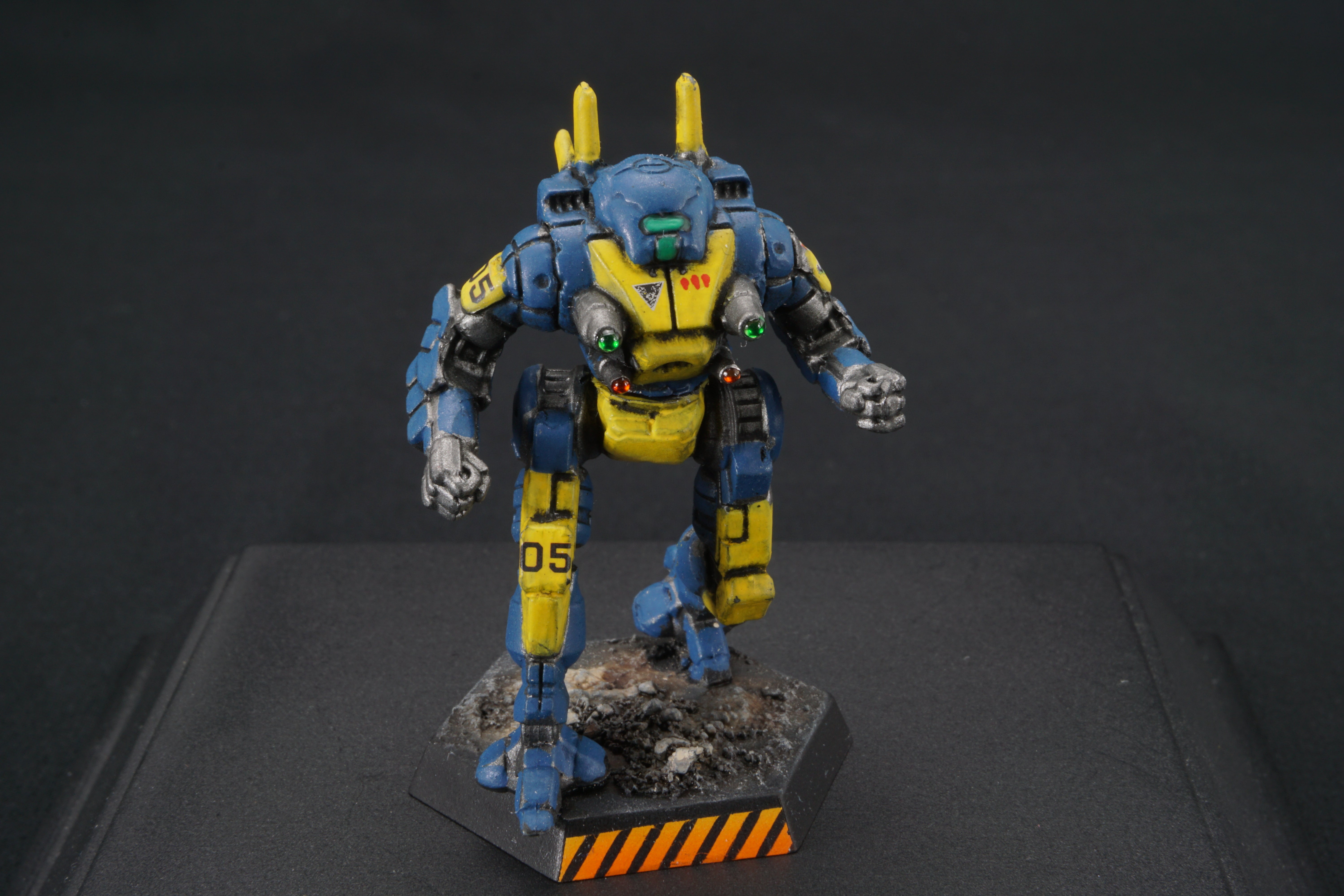 Each miniature base is painted to facilitate easy customization - so you can match your mechs to your terrain at home - add desert scrub and dust, or add snow, or green foliage.  I've provided a base that should work with anything from forests to urban environments.