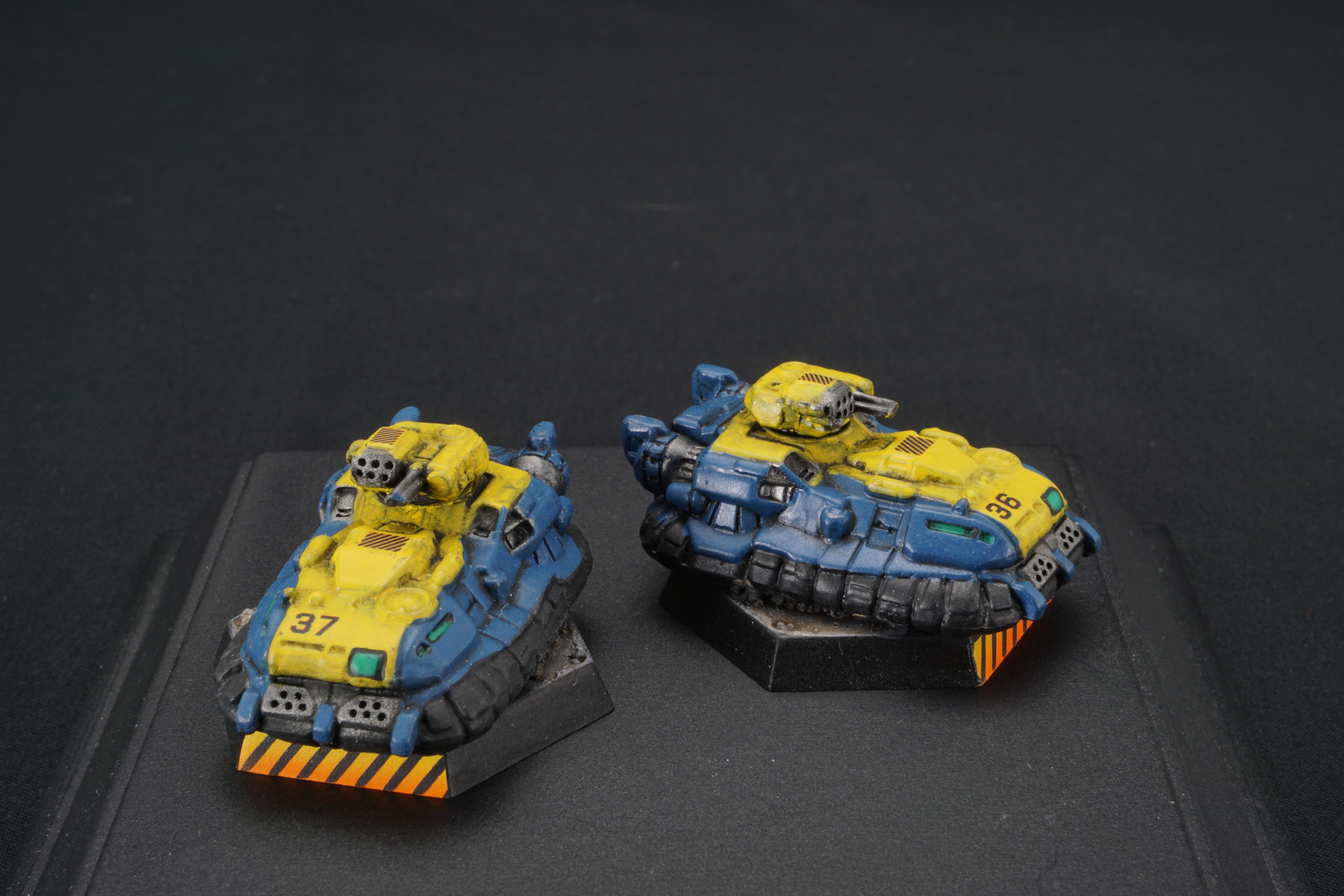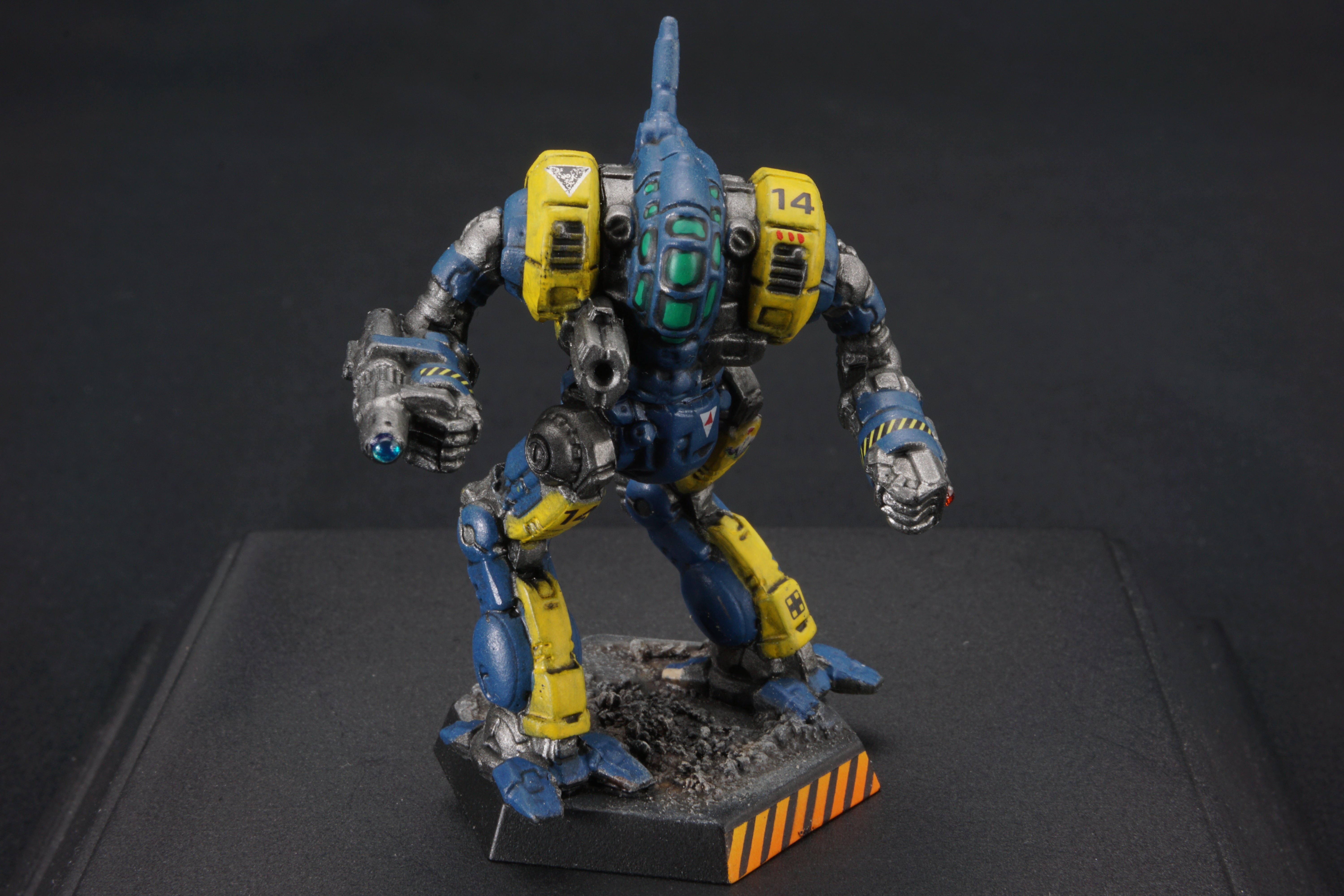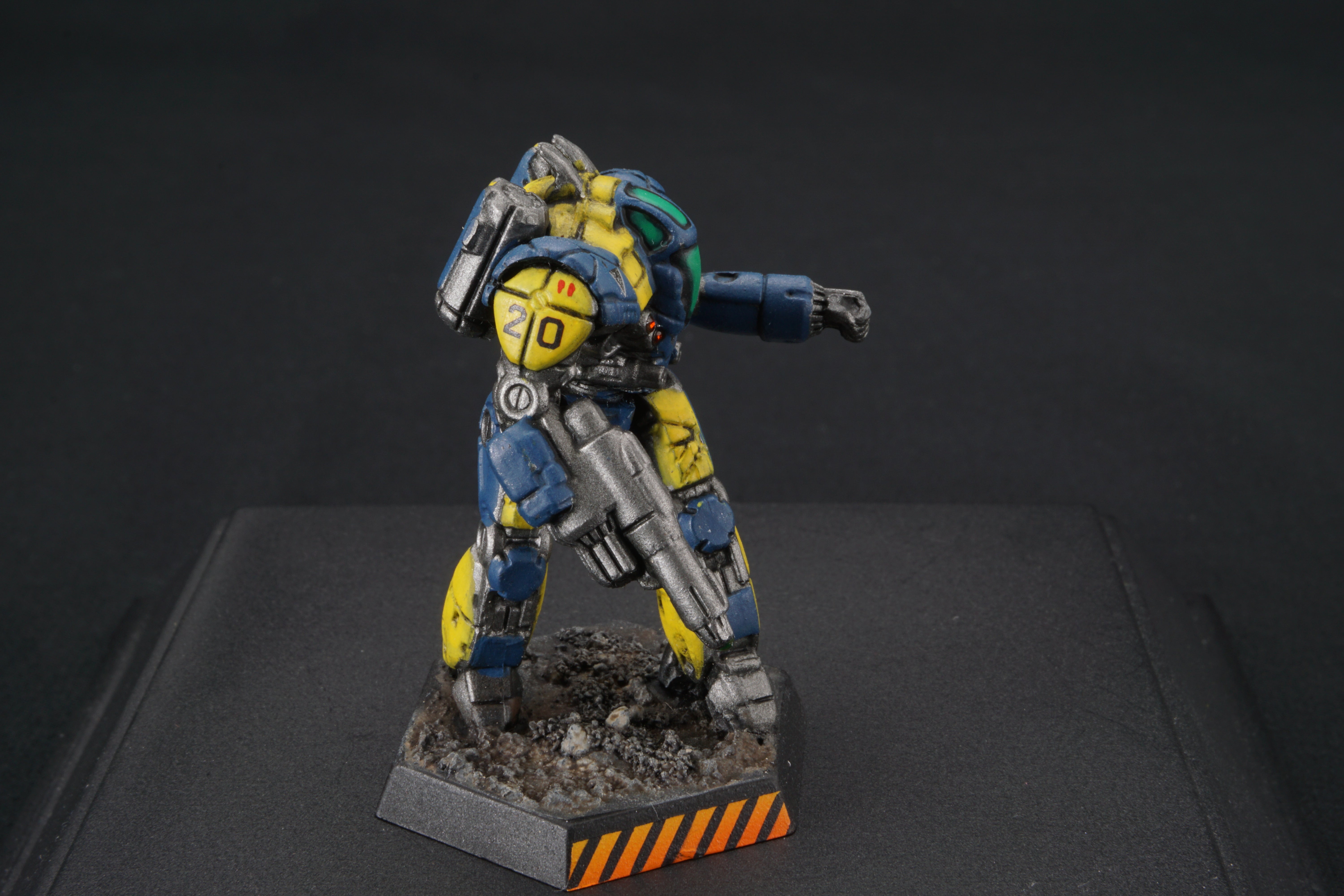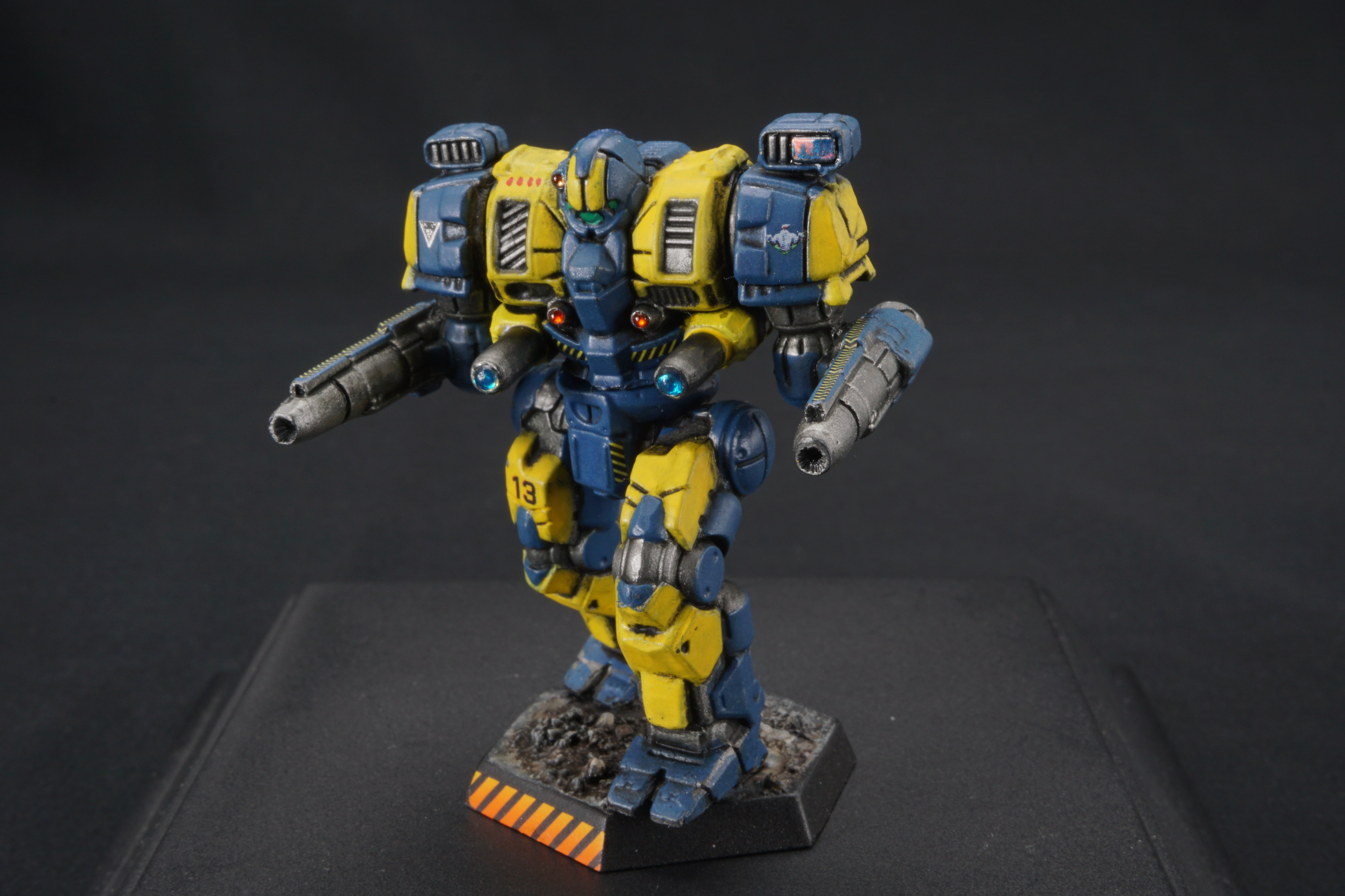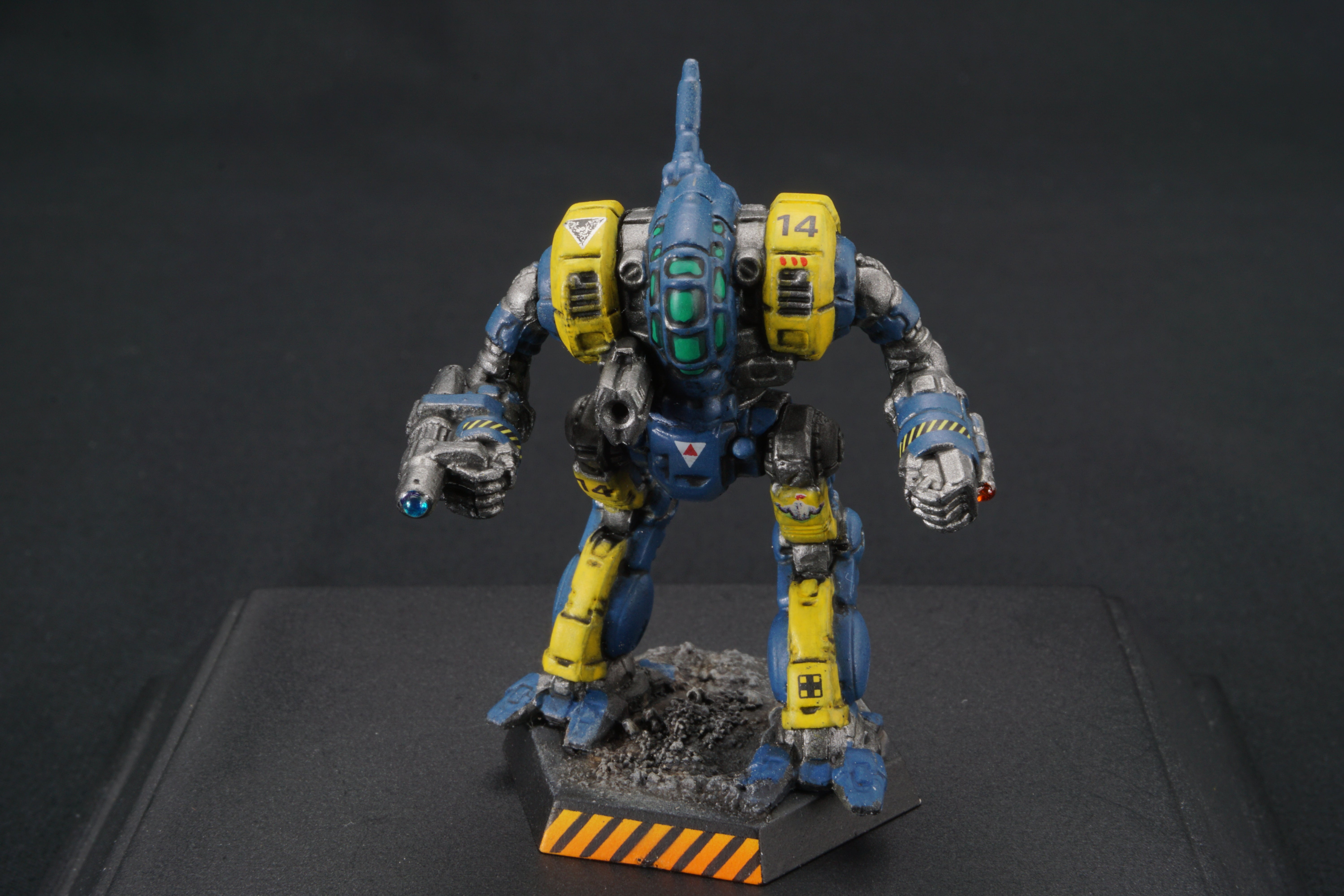 Each miniature base is painted to facilitate easy customization - so you can match your mechs to your terrain at home - add desert scrub and dust, or add snow, or green foliage.  I've provided a base that should work with anything from forests to urban environments.