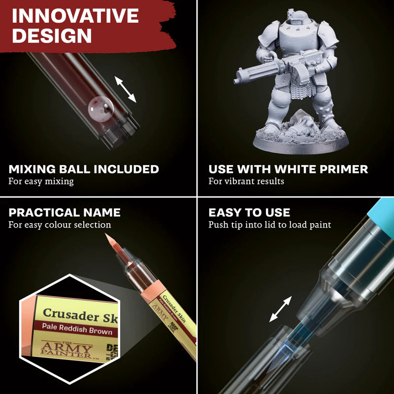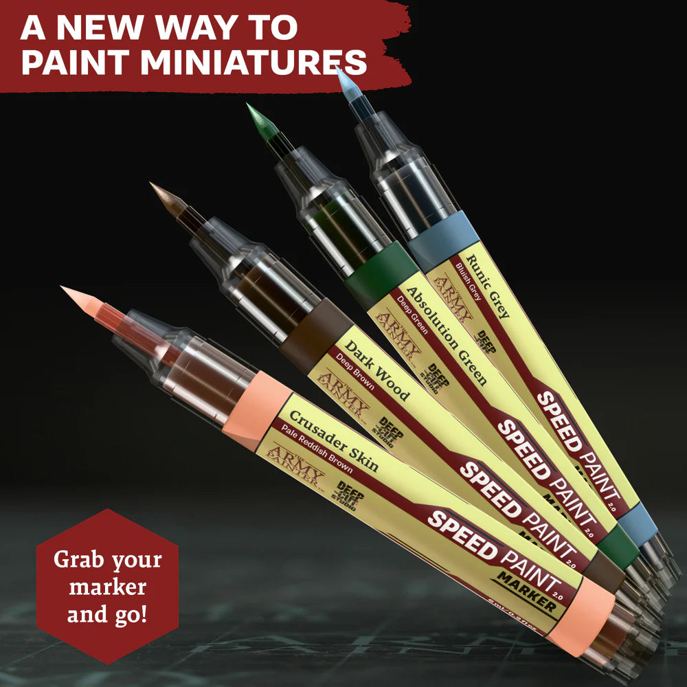 With Speedpaint Markers, you hold an entire hobby in your hands. With the release of Speedpaint Marker singles, you can experiment with a new way to paint and push the boundaries of your hobby. Try Speedpaint Markers with 20 ultra-rich colours that make painting easier than ever. Without a brush or palette, you can switch between colours in a heartbeat and take your hobby wherever you go. Our innovative Felt-Tech tip technology combines precision and even pigment distribution—cover large surfaces or paint the smallest details. Reimagine your hobby.
