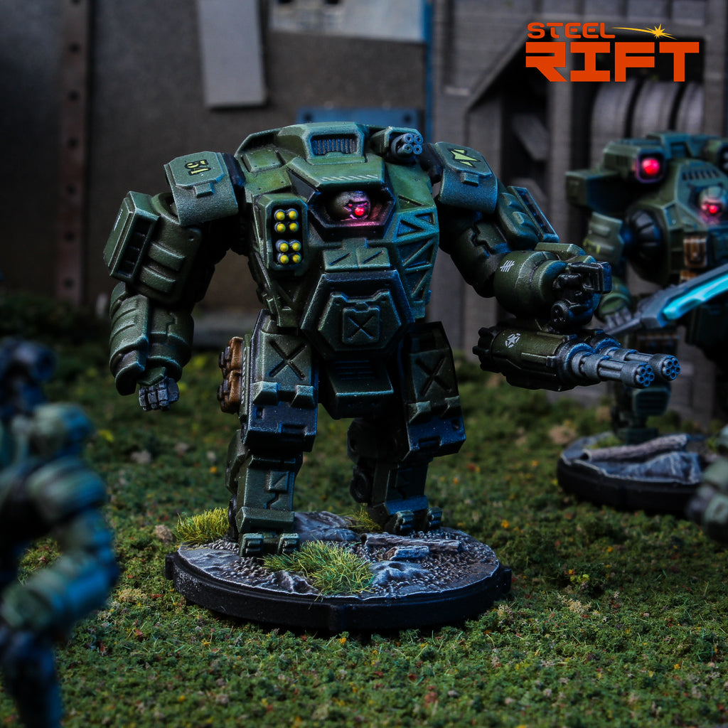 Extra weapons and arms can also be purchased separately to create even more weapon variations. This model and its components are high detail 3D printed resin. Each model supplied unpainted. Basic hobby tools and super glue required. Made for Steel Rift, but also perfect for other 6-10mm Sci-Fi games.