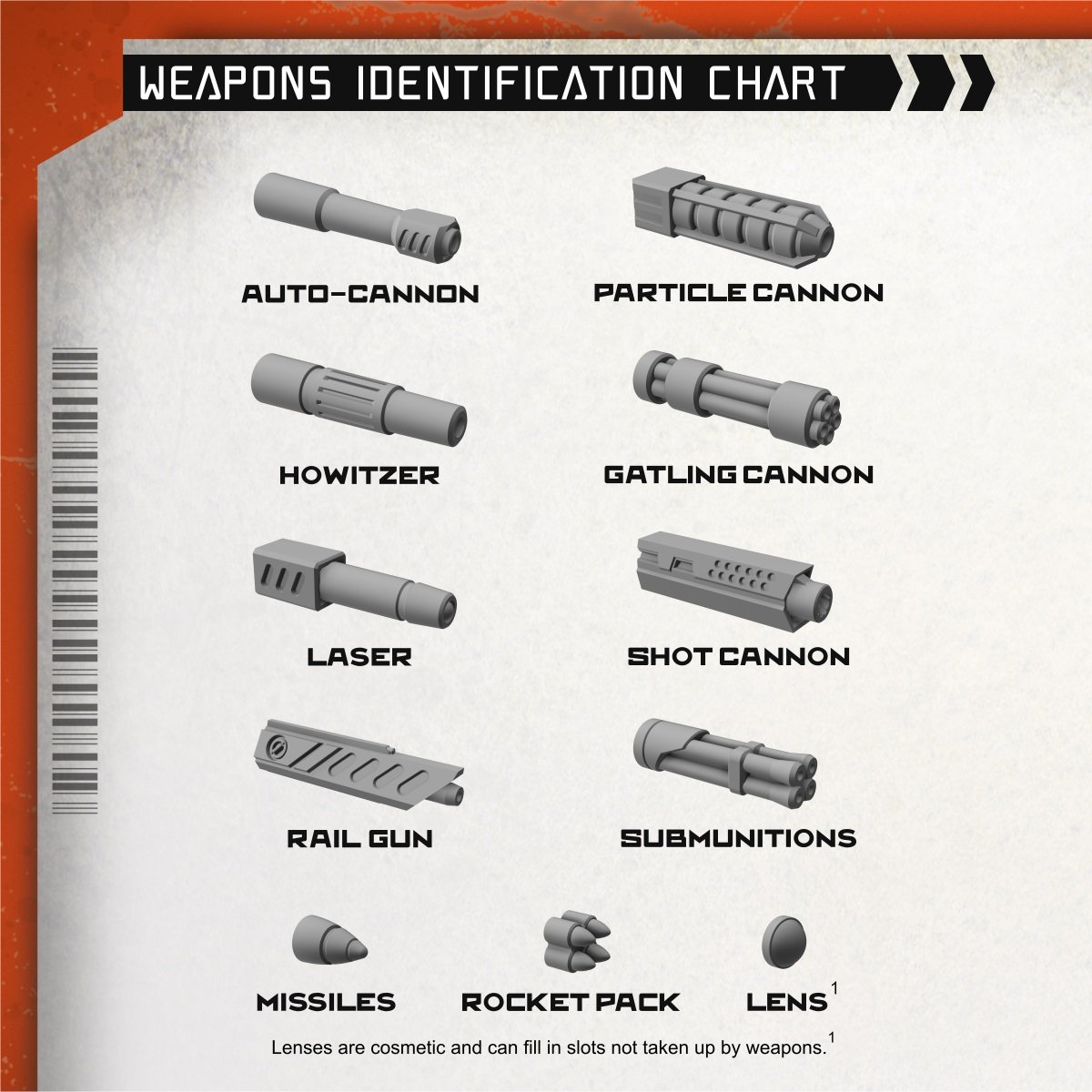 Please note that some weapon configurations in the images use more copies of a part than is included in this pack.